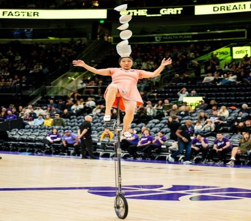 在各大赛事中场休息的时候通常会安排一些表演节目,杂技表演就是常见的一种表演形式,而篮球与杂技又有着独特的匹配度。